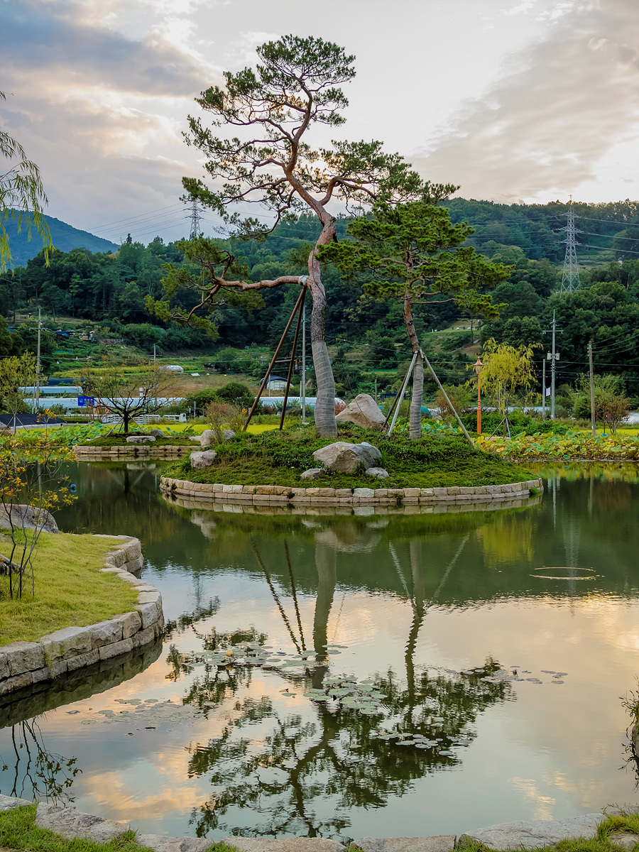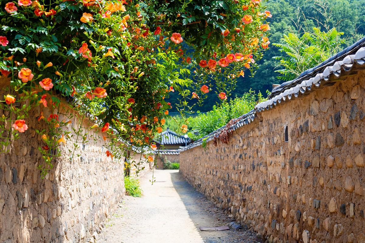 매년 유월이면 능소화가 골목 안 담장과 어울려 화사하게 피고, 마을 입구 연못에는 연꽃과 소나무가 주변 자연과 어우러져 소박한 아름다움을 보여줍니다.