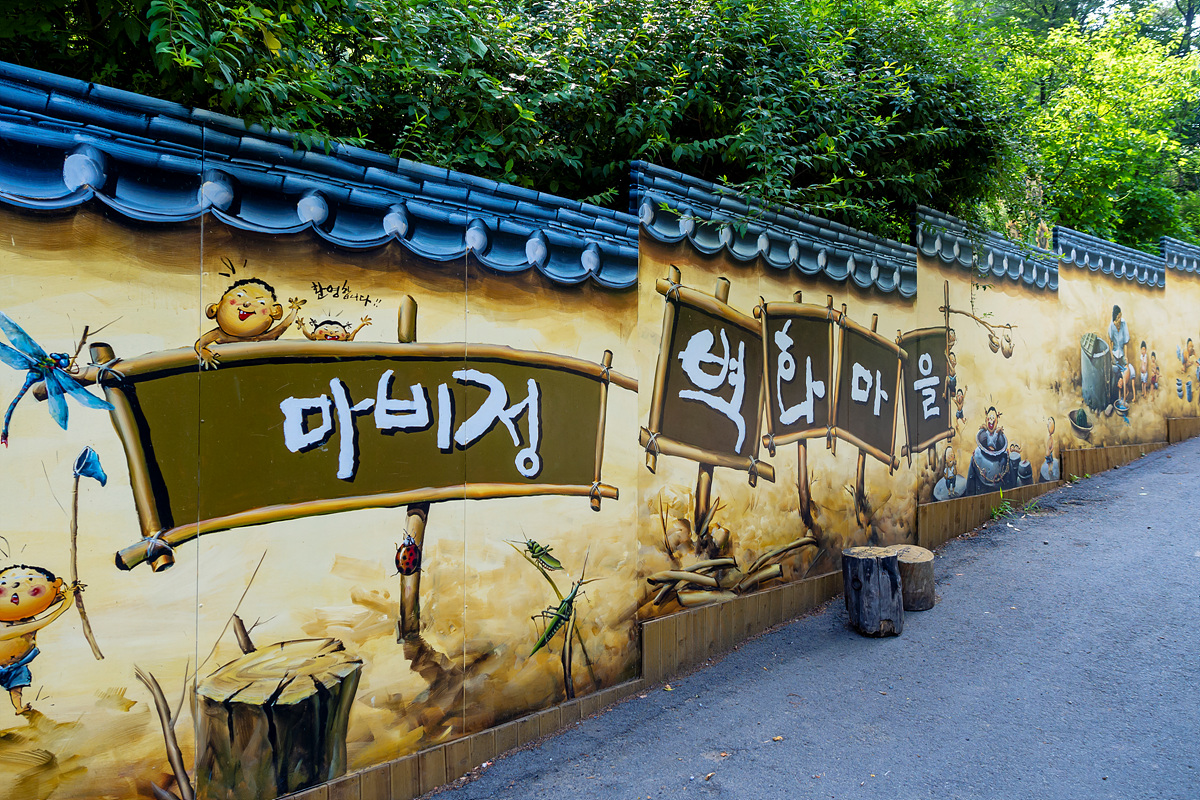 마비정 벽화마을은 마을 전체가 60~70년대의 정겨운 농촌의 풍경을 토담과 벽담을 활용하여 벽화로 꾸며져 있으며, 국내 유일의 연리목+연리지 사랑나무와 국내 최고령 옻나무, 대나무 터널길, 이팝나무 터널길 등 자연과 어우러진 곳입니다.