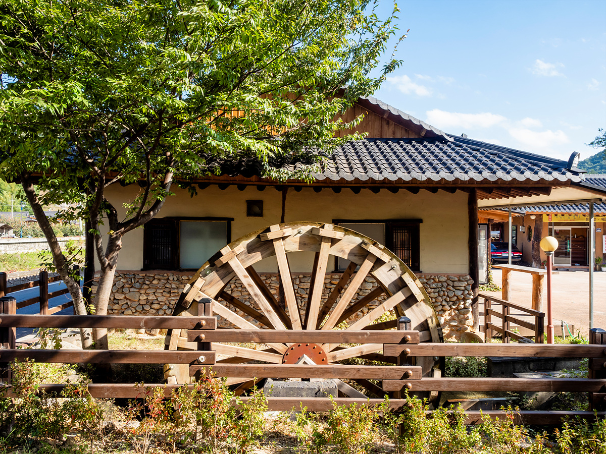 도로에서 보이는 골목에는 수령 300년이 넘는 회화나무가 있습니다. ‘X’자 형태로 서로 교차하는 두 그루의 나무는 ‘부부 회화나무’인데 나무 아래를 통과하면 금실 좋은 부부로 백년해로를 한다는 이야기가 있어 방문객들에게 인기가 많은 곳입니다.