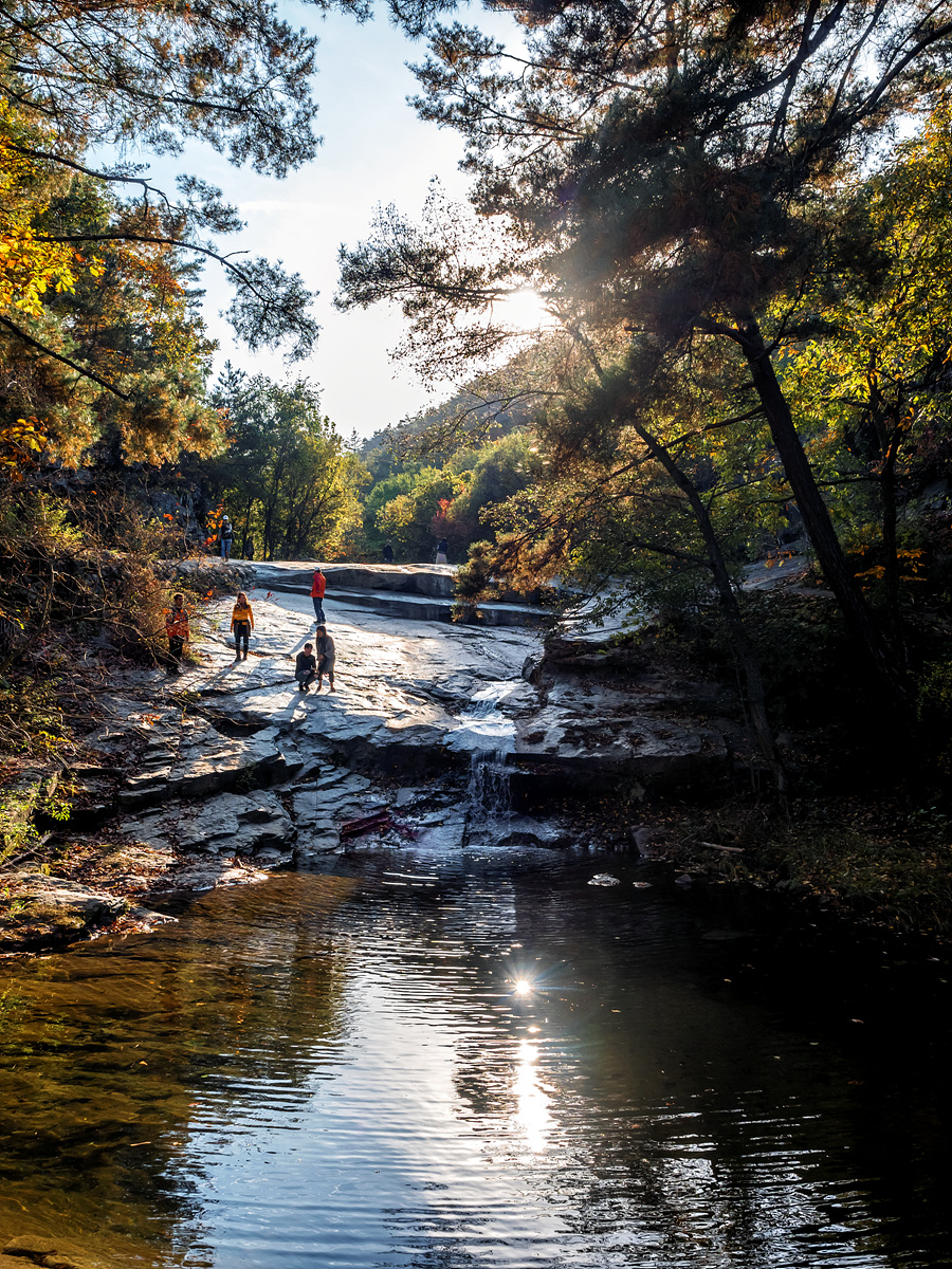 묵계서원을 내려와 도로를 건너서 마을 입구에 다다르면 만휴정을 위한 넓은 주차장이 있습니다. 마을을 지나 오르막인 산허리를 돌면 아름다운 폭포와 함께 나무들 사이로 만휴정이 그 모습을 드러냅니다.