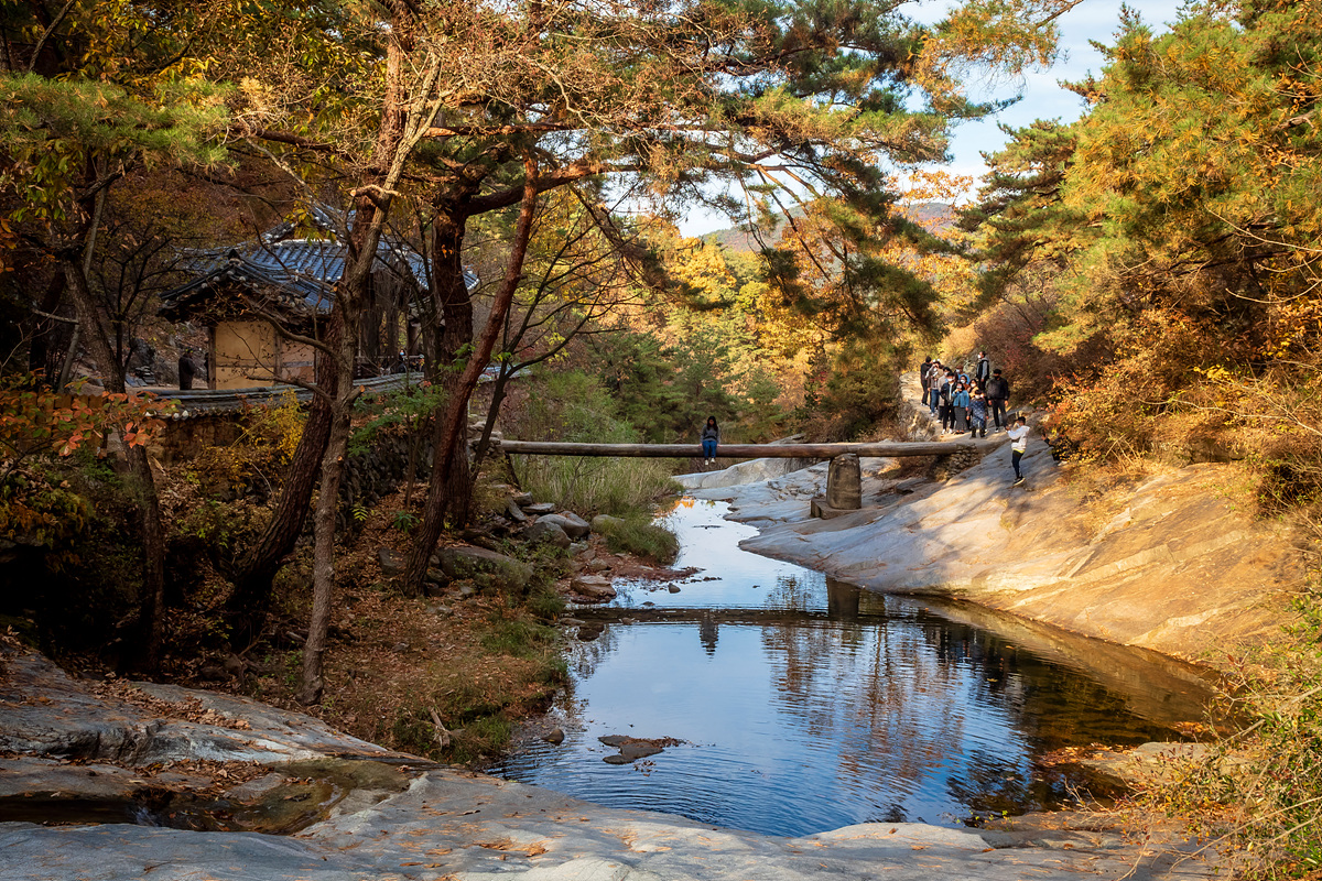만휴정은 ‘만년에 휴식을 취할 곳’이라는 뜻으로 묵계의 깊은 산골짜기 송암 폭포 위에 있습니다.