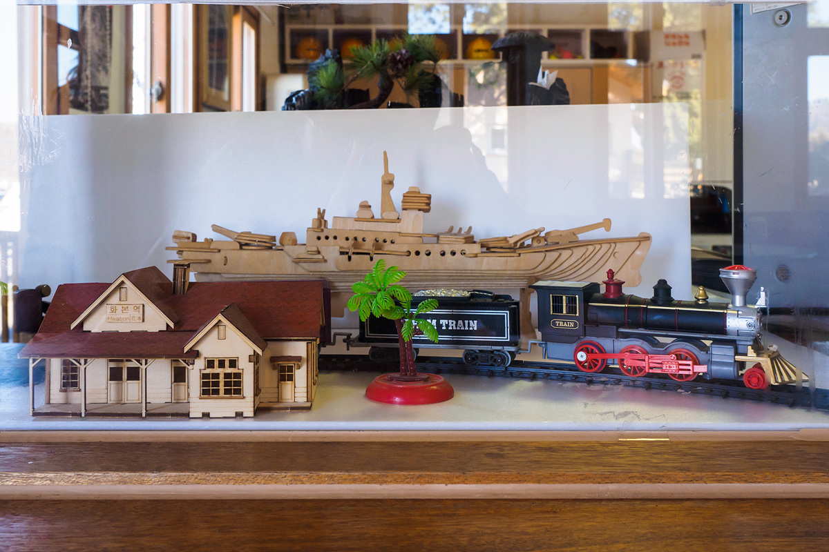 화본역 옆에는 실제 운행되던 새마을호 열차를 개조해 만든 레일카페도 운영하고 있습니다. 이는 실제 동차가 아닌 새마을호 카페객차에 모형 전두부를 붙인 것입니다.