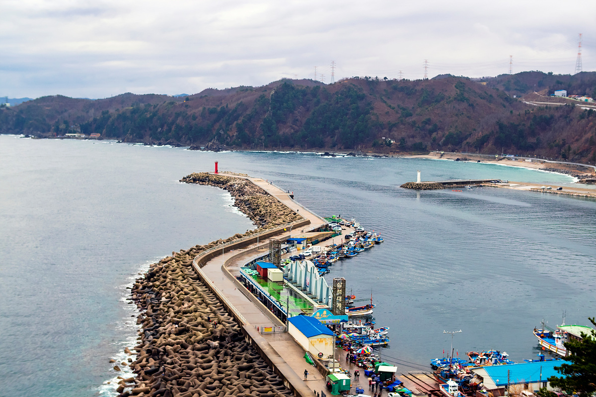 장호항에서 자동차로 15분 정도 7번국도를 따라 내려오면 임원항이 나옵니다. 임원항을 지나면 바로 수로부인 헌화공원 매표소와 주차장이 있습니다.